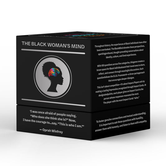 The Black Mind card games feature expertly crafted questions designed to move conversation from small talk to soul work. Rooted in our D.I.G. Framework and powered by cultural truth-telling, it invites Black people across generations and life experiences to unpack their stories, challenge assumptions, and connect more deeply—with ourselves and with each other.